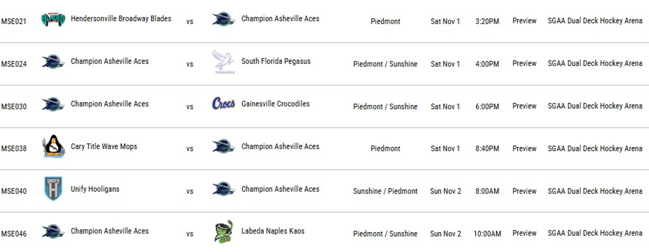 Champion Asheville Aces are a proud member of the Professional Inline Hockey Association (PIHA), representing Asheville, North Carolina. The team competes in the Southeast Conference, Piedmont Division, showcasing high-level inline hockey talent.